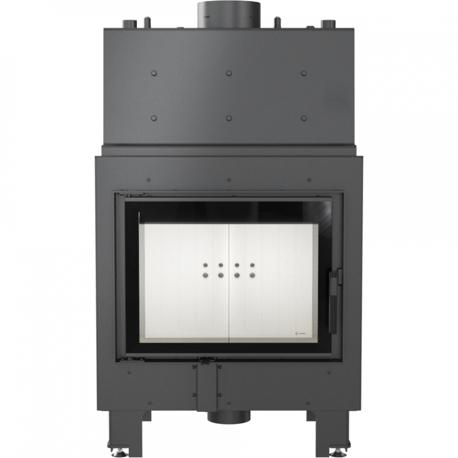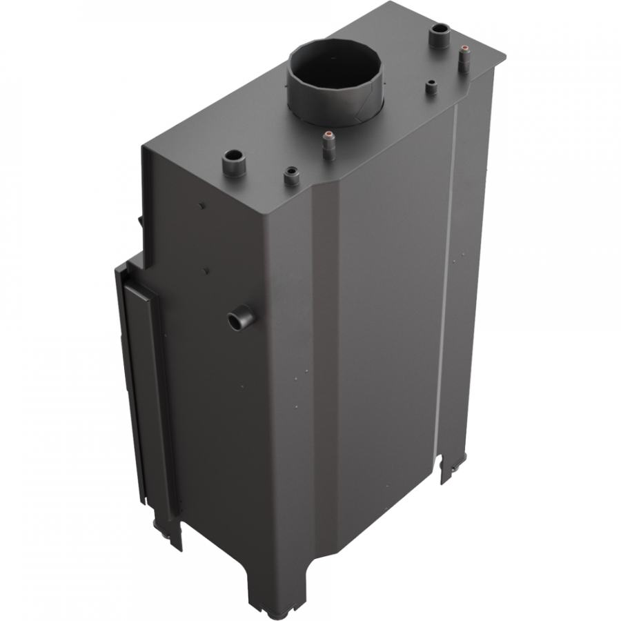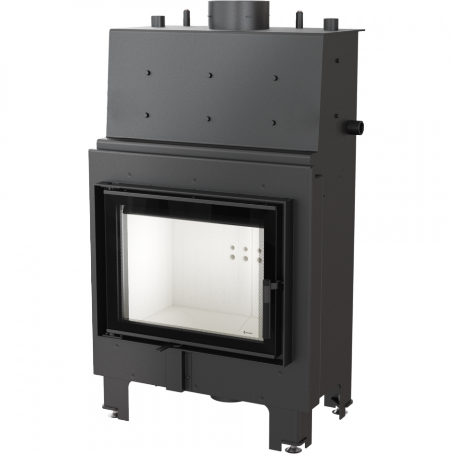Špeciálne navrhnutý vodný plášť umožňuje efektívne využívať teplotu zo spalín a odovzdávať do vykurovacieho systému, vďaka čomu sa dosahuje vysoká energetická účinnosť krbovej vložky. Priemer vstupu/výstupu 1 col, vychladzovacia špirála 1/2 col.