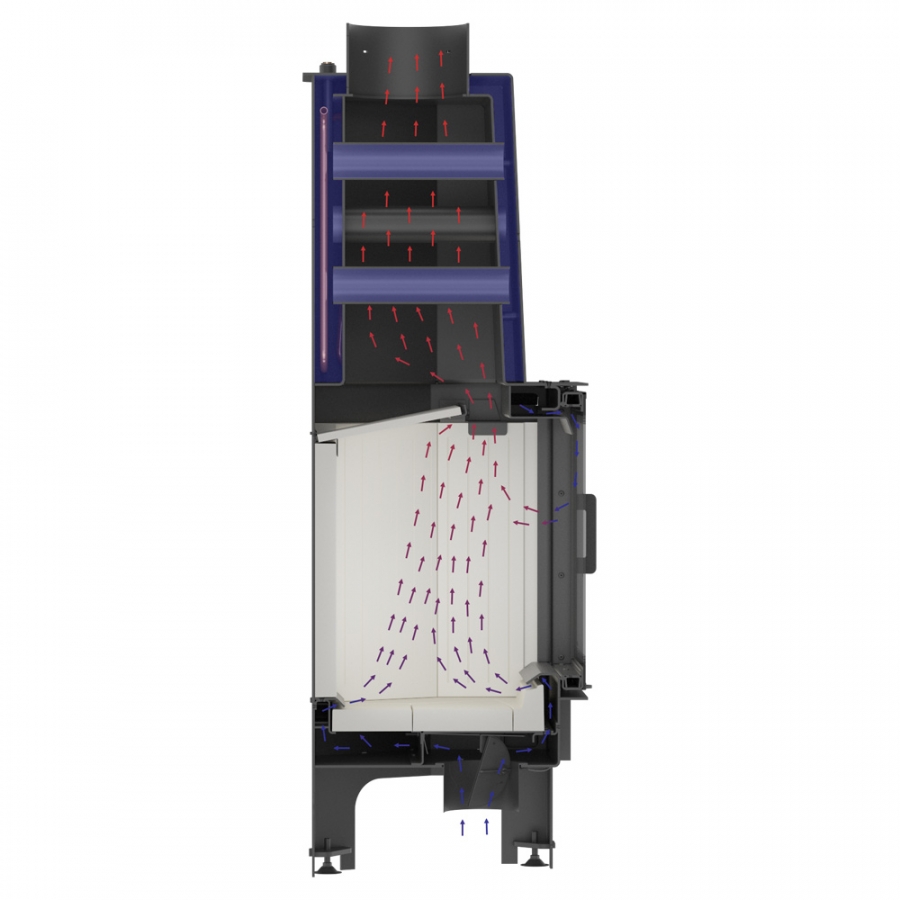 Odber veľkého množstva tepla zo spalín a odovzdanie do vykurovacieho systému, vďaka čomu je možné dosiahnuť vysokú energetickú účinnosť vložky.