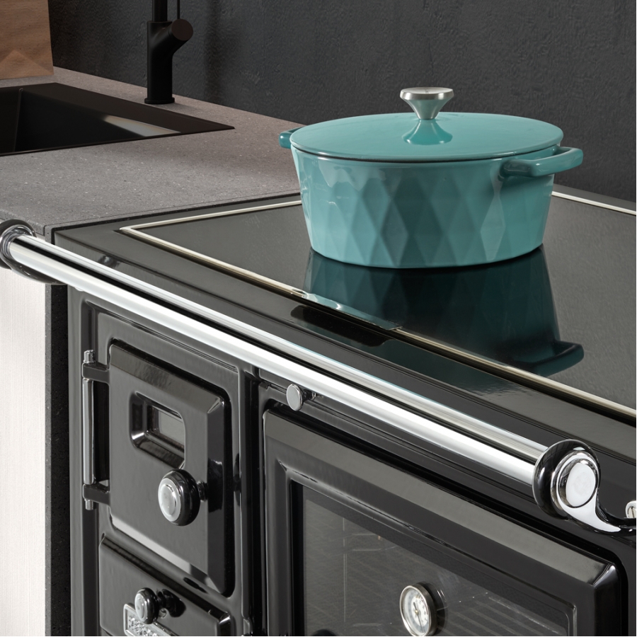 Kuchyne Saja, vyrobené z liatiny s vysokokvalitným smaltovaným povrchom, veľkou odolnosťou a optimálnym prenosom tepla, majú 3 varné plochy: zdvíhaciu sklokeramickú pracovnú dosku, druhú z lešteného smaltovaného železa a nerezovú rúru