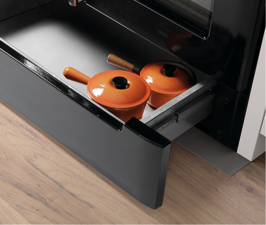 Náš sporák na drevo Cares je vybavený aj zásuvkou v spodnej časti s veľkou úložnou kapacitou a výklopnou sklokeramickou varnou doskou a s leštenou smaltovanou doskou, aby ste mohli ľahko meniť varnú plochu.