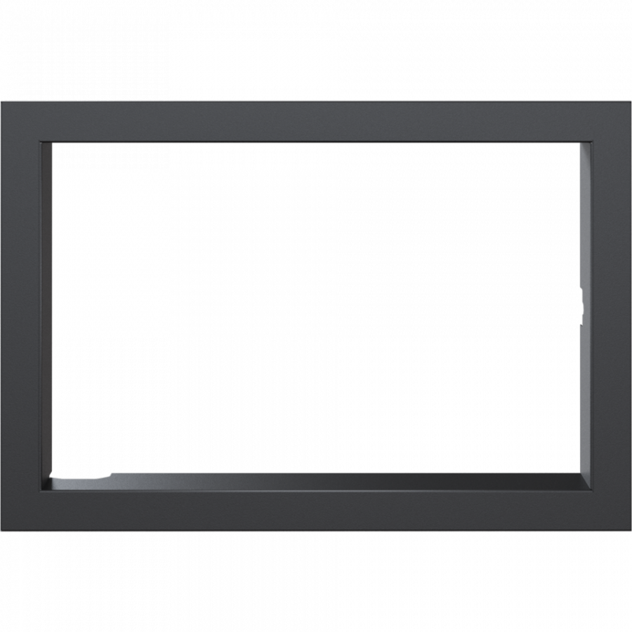 Moderný oceľový rám pre krbové vložky LUCY 14 TUNEL s rovným - priehľadovým presklením určený na zadnú stranu, kde nie je klapka na reguláciu výkonu. Hlavnou výhodou je jeho rýchla a jednoduchá montáž bez pomoci akéhokoľvek náradia.
