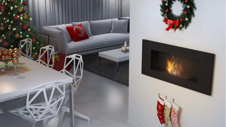 Výklenok: moznosť montáže do výklenku konštruovaného pre tento účel. Dodržujte bezpečnú vzdialenosť od steny (1,5 cm), ktorá umožňuje cirkuláciu vzduchu okolo biokrbu.