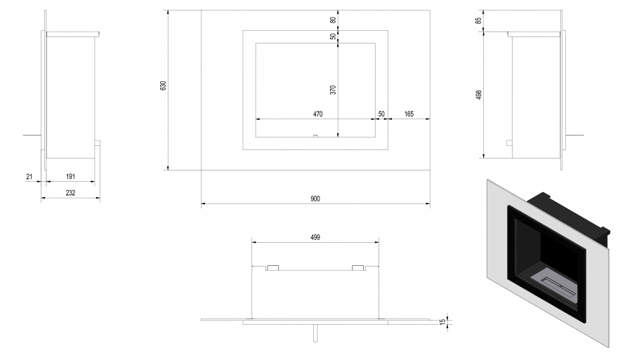 Závesný biokrb OSCAR čierny sklenený 900x630mm